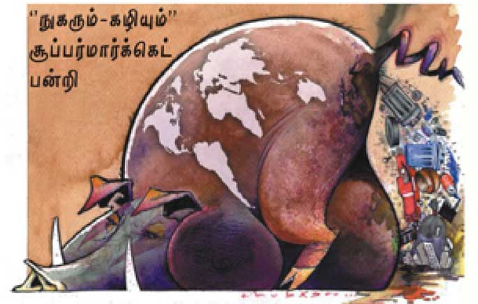 உங்களைத் திட்டமிட்டு அடிமையாக்குவது, அதைக் கலாச்சாரமாகத் திணிப்பது இன்றைய தனியார்மயத்தின் அடிப்படை விதி. நீங்கள் வாங்கியே ஆக வேண்டும். பணத்தை சேமிப்பதை விட அதைச் செலவழிக்க வேண்டும். மக்களைச் செலவழிக்கும் எந்திரங்களாக மாற்றி ரத்தத்தை உறிஞ்சுவதுதான் முதலாளிகளின் இன்றைய நிலை.